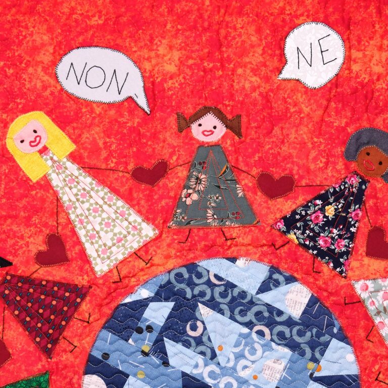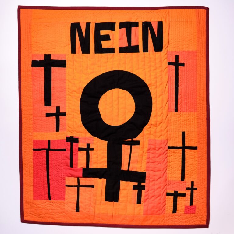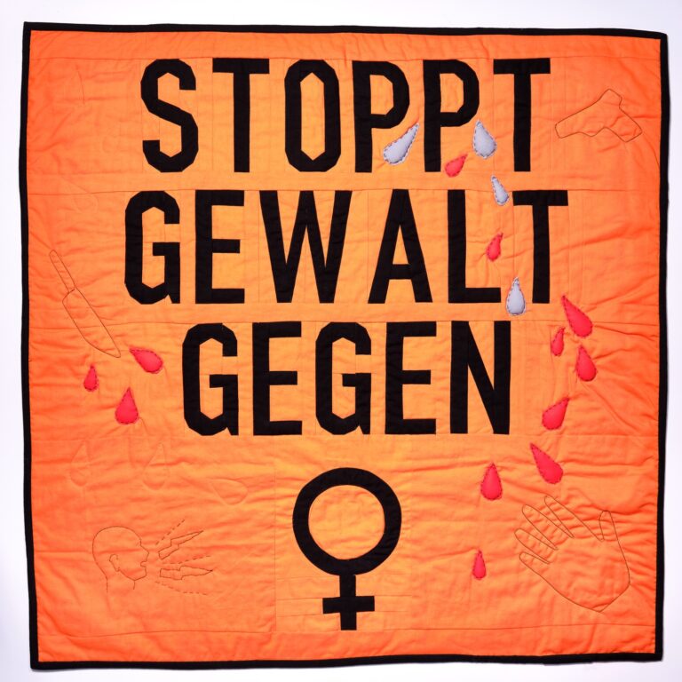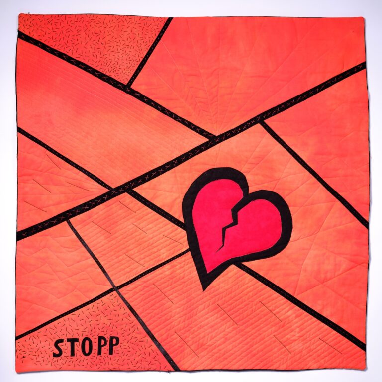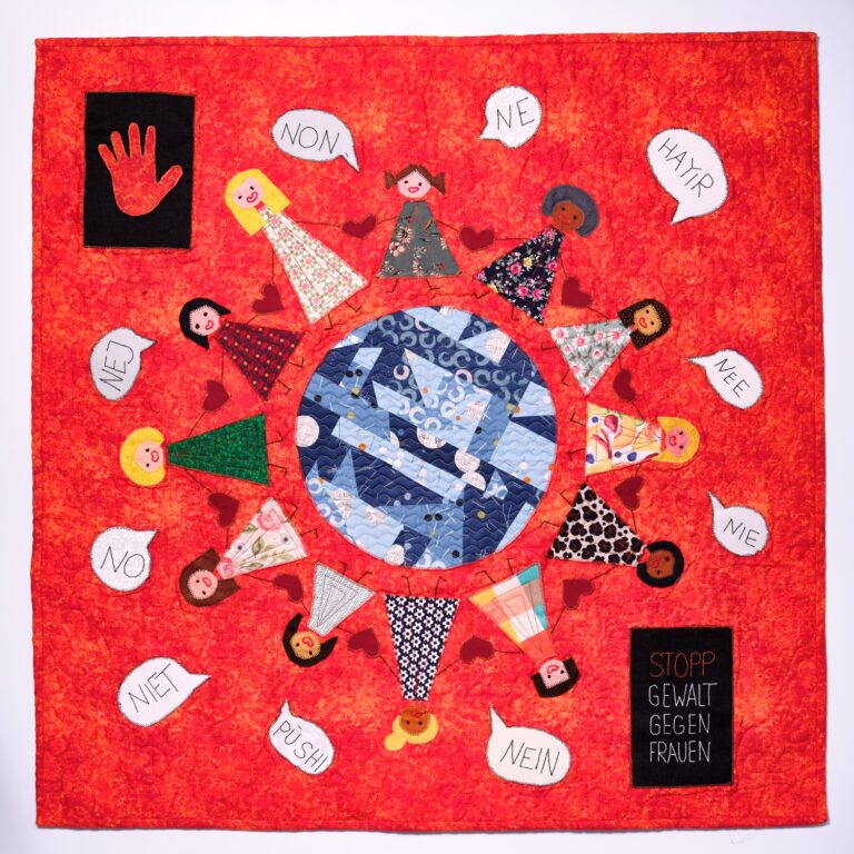 Der zweite Gedanke folgte umgehend: „Können wir nicht gleich eine ganze Ausstellung mit Quilts über das Thema Gewalt gegen Frauen machen?“