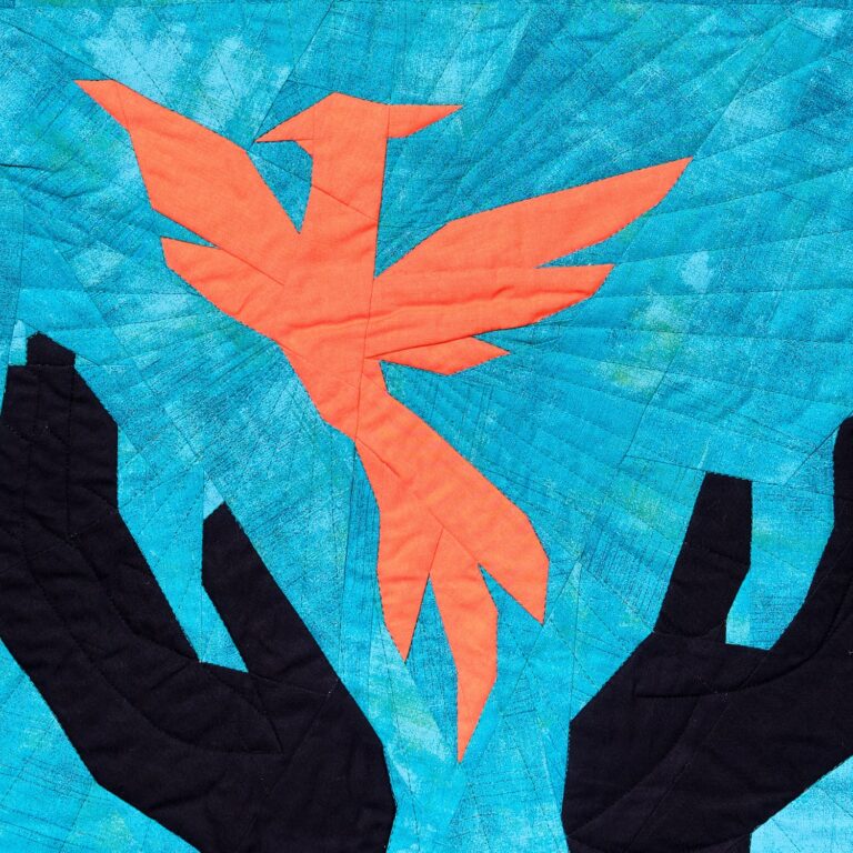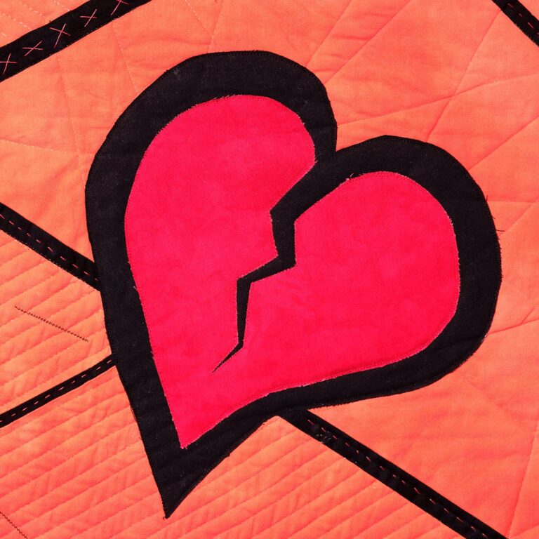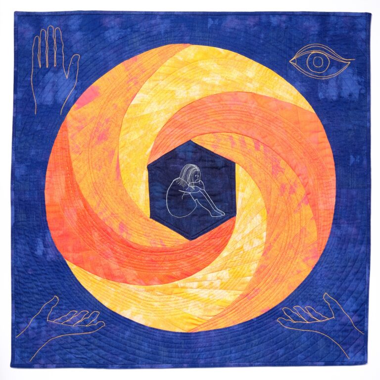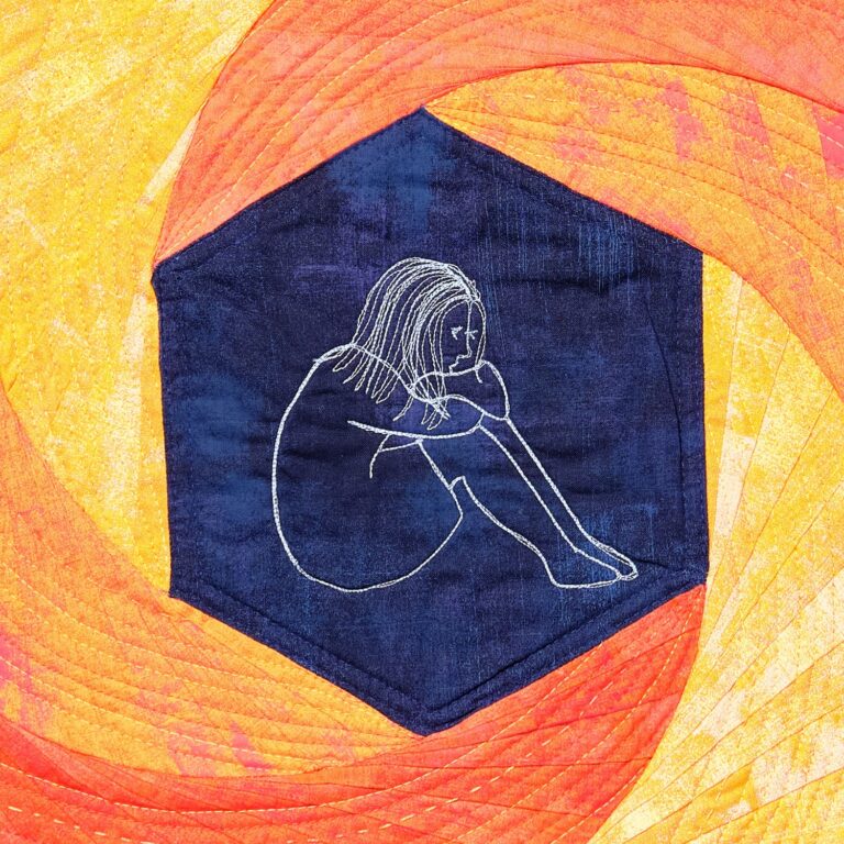 Gewalt hinterlässt Spuren – nicht nur auf der Haut, sondern tief im Inneren. Dieser Quilt macht sichtbar, was oft verborgen bleibt: die Zerrissenheit einer verletzten Seele.