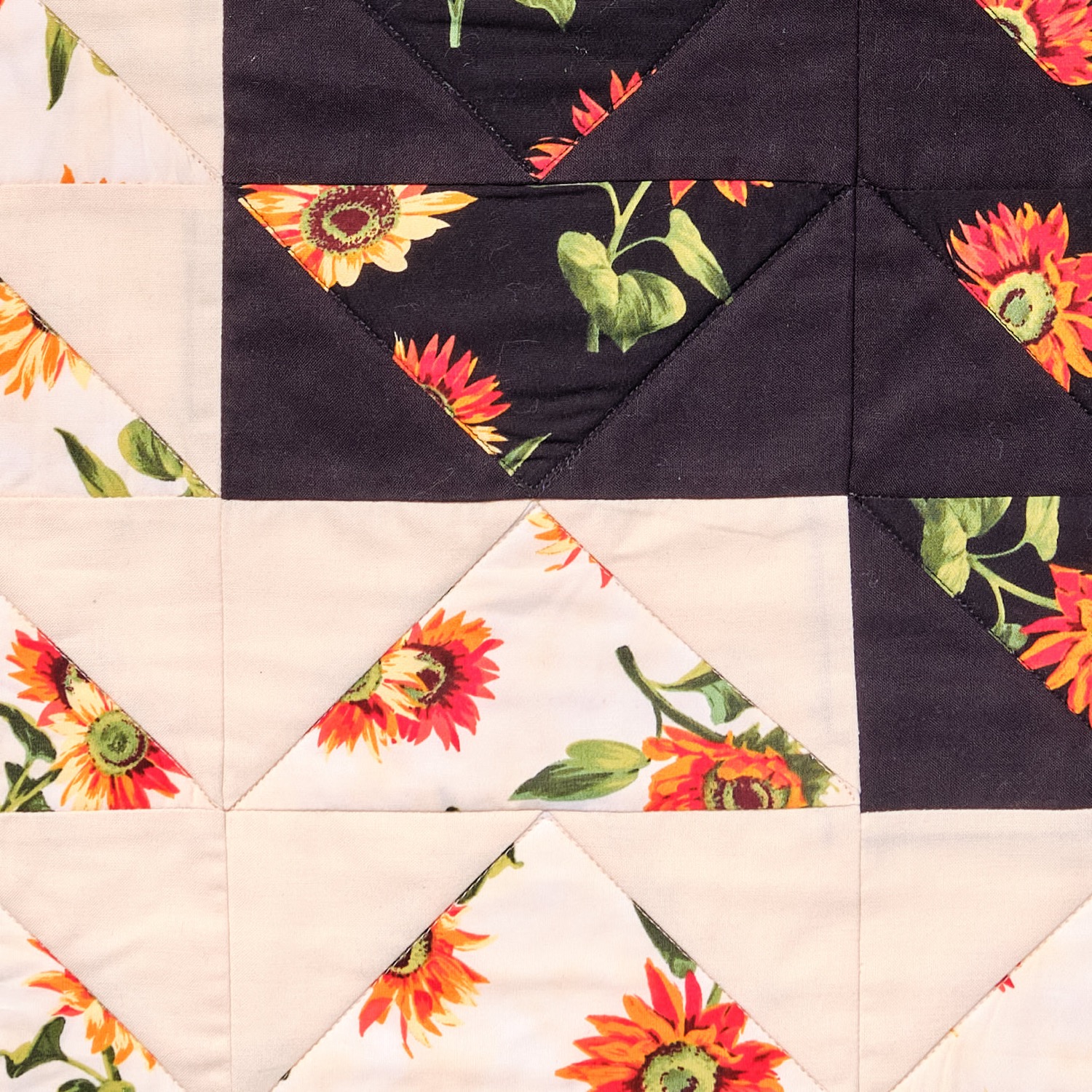 Mein Quilt ist maschinengenäht, maschinenappliziert und hat ein paar wenige Handstiche.