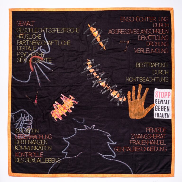 Ich möchte mit meinem Quilt einen Beitrag dazu leisten, Gewalt gegenüber Frauen ins Bewusstsein zu bringen.