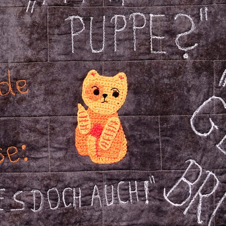 Herzlich bedanken möchte ich mich bei Rochsane M., die mir die “Cat against Catcalling” nach einem Muster von Inga Borges (Instagram byfrauline) für diesen Quilt gehäkelt würde.