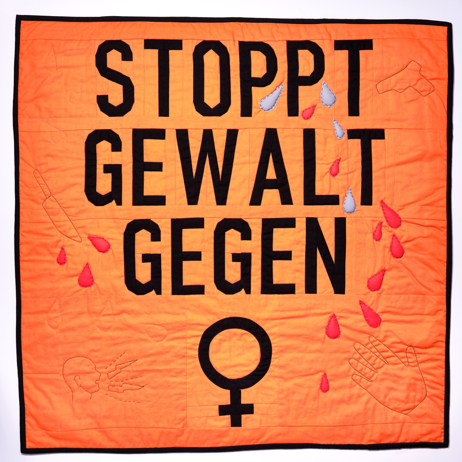 Mein Quilt soll provozieren und schockieren. Er soll den Betrachter animieren darüber nachzudenken, was Gewalt ist und welche Folgen daraus entstehen.