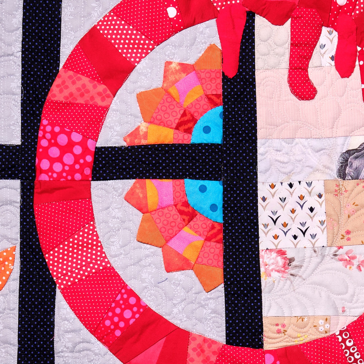 Techniques used: FPP, improv, appliqué stuffed, Machine- and handquilting